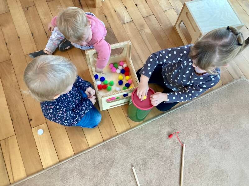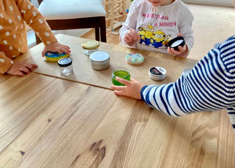 Gleich zwei neue „Spielmaterialien“ haben wir diese Woche selbst gestaltet. Das eine war ein Spielbrett mit verschiedenen Dosen und Gläsern zum auf und zu schrauben. Leider hat der Kleber nicht ganz so gut gehoben und so manches Döschen wurde von den Kindern gelöst, was aber wieder rum den tollen Anlass bot auszuprobieren, welche Dose/welches Glas in ein anderes hinein passt. Das andere war eine große Dose, befüllt mit bunten Pompoms, welche man zu einer kleinen Öffnung im Deckel hinein stecken kann. Genutzt wurde beides die ganze Woche immer wieder von allen Kindern mit großer Freude!