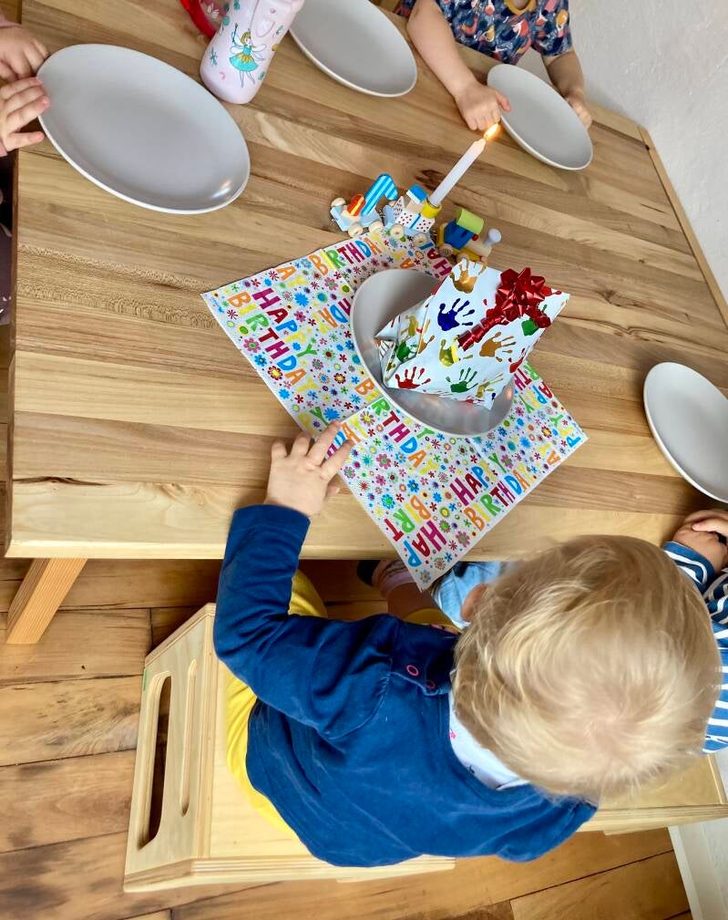 Zum ersten Mal feierten wir bei uns in den vergangenen zwei Wochen den ersten Geburtstag einer Zwergnase! Wir zündeten eine Kerze an und sangen gemeinsam „Zum Geburtstag viel Glück“. Anlässlich dieser Feier backten wir leckere Waffeln (natürlich Zuckerfrei 😉), und es gab für die Zwergnase ein kleines Geschenk 🎁