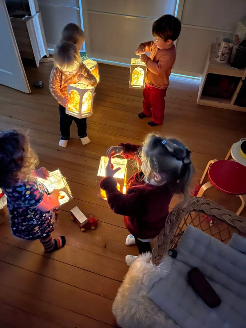 Mit den fertig gestalteten Laternen liefen wir durch unser abgedunkeltes Spielzimmer, sangen und hörten Laternenlieder und genossen dabei die fast schon magische Atmosphäre. ✨