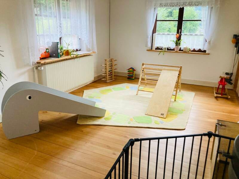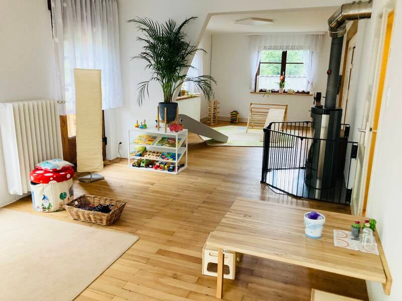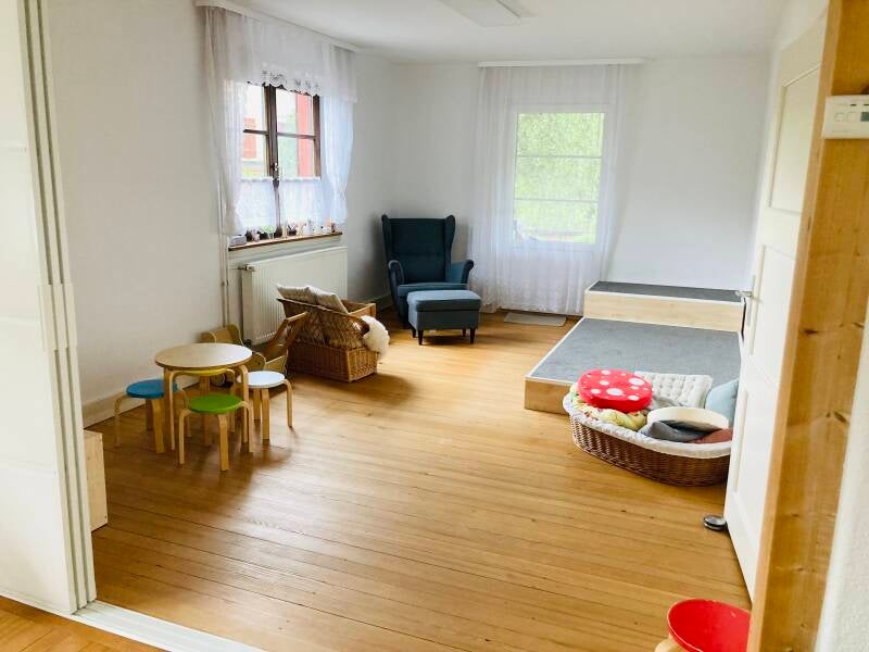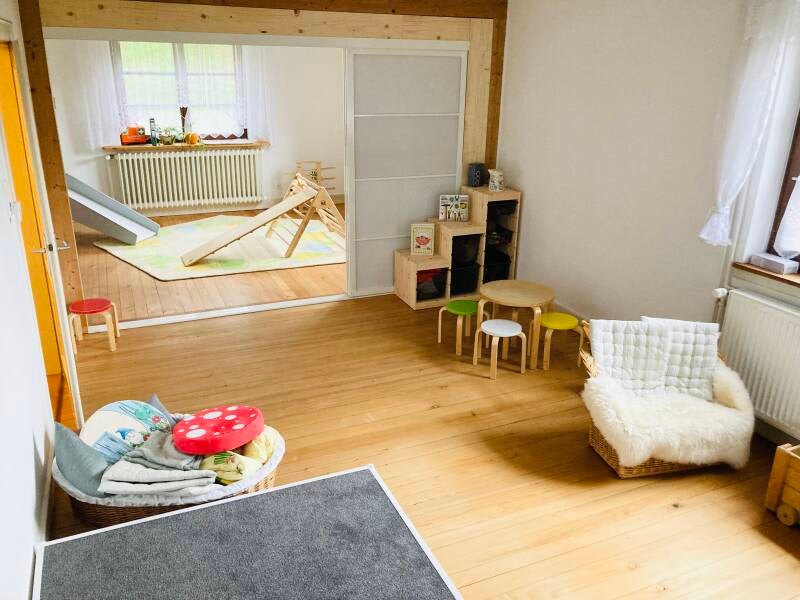 Die gesamten Räumlichkeiten des Erdgeschosses unseres Hauses stehen den Kindern zur Verfügung. Dazu zählen ein großes Spielzimmer mit ca. 53m², ein Flur, ein Badezimmer und die Küche.